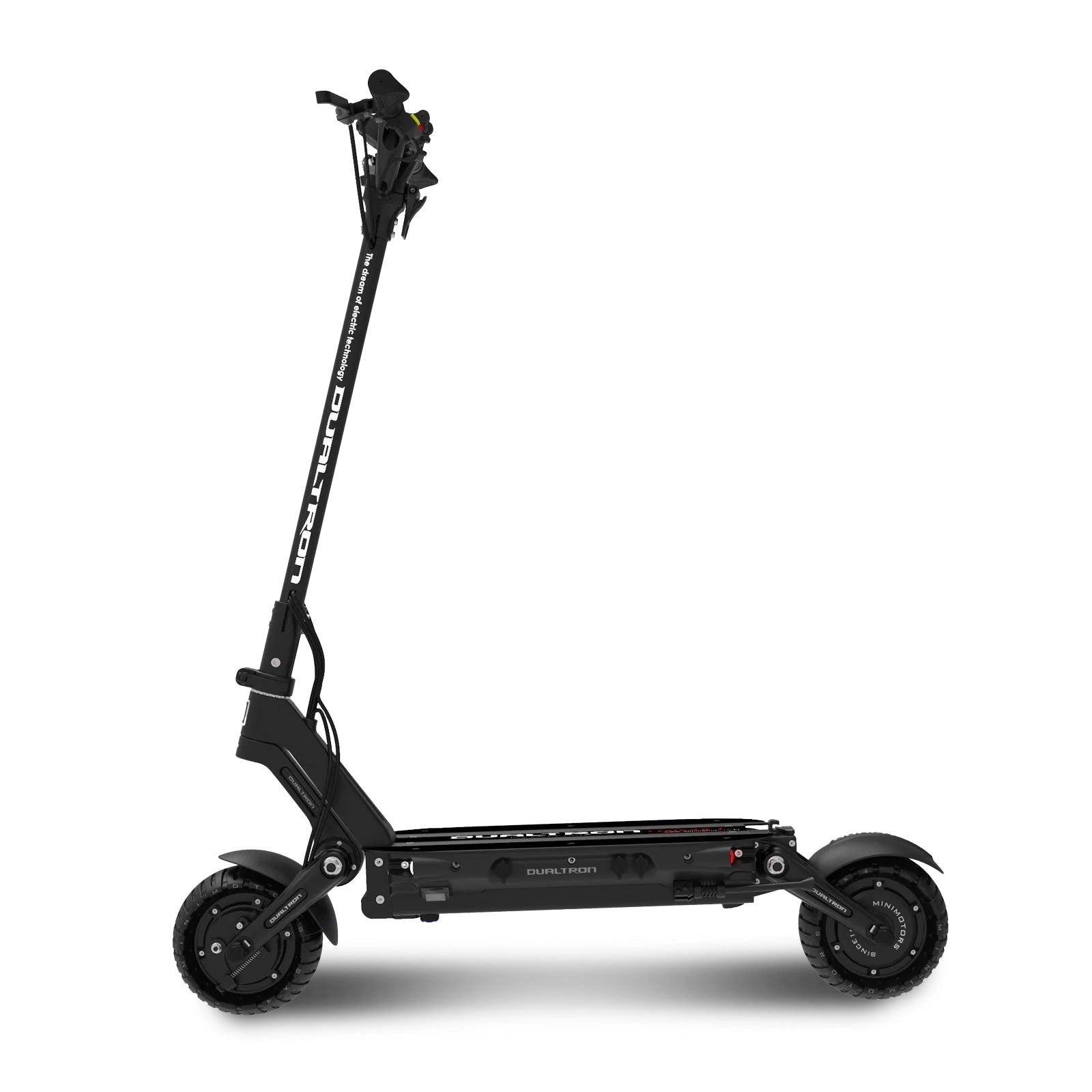 The Dualtron Compact is a powerhouse for its size. The Compact features dual drive BLDC hub motors capable of putting out 3,400 watts max. It comes with drum brakes coupled with ABS to ease the maintenance, and eight inch solid tires so you don't need to worry about flats. A 60 volt 30Ah battery pack with LG cells will give you up to a 60 mile range.